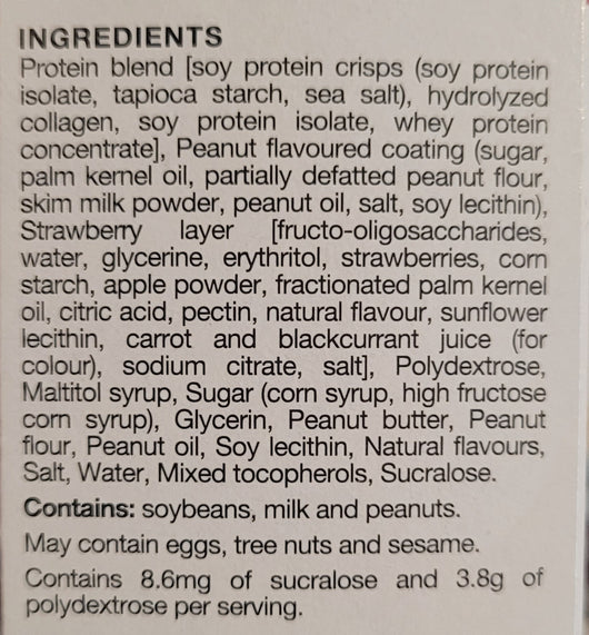 The Old Fashioned Strawberry & Peanuts Protein Bar from ProtiDiet is high in protein (15 grams) with only 160 calories and 5 grams of fat. ProtiDiet’s Old Fashioned Strawberry and Peanut Protein Bar will fill you up and keep you satisfied, all without any of the after taste found in some bars.